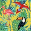 Flamingo tropical summer mood on green palms trees and summer fill.